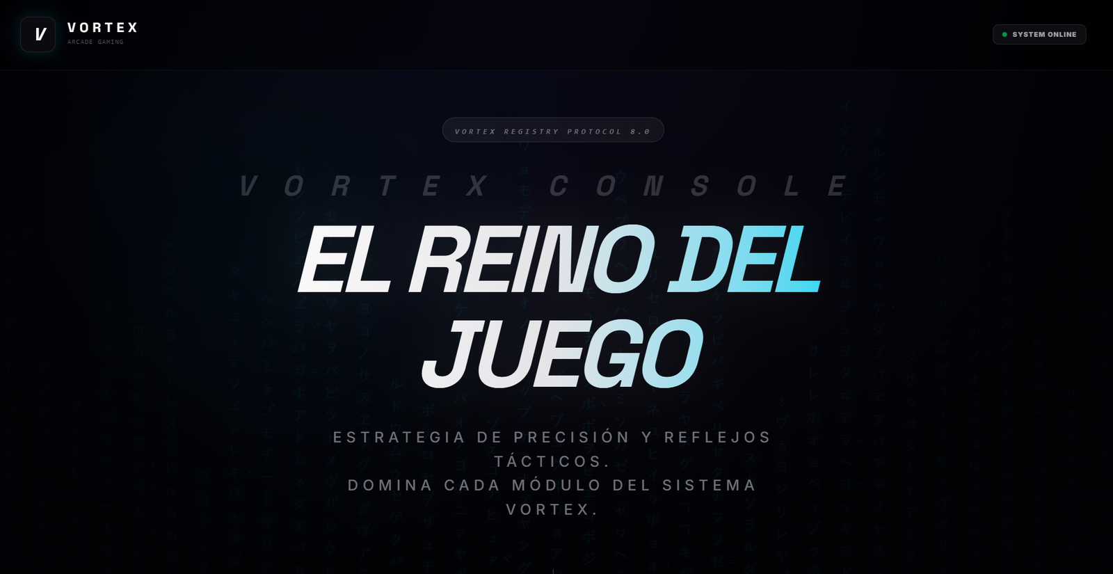 Alto contraste oscuro, luces neón e interacciones 3D.